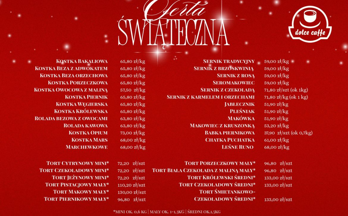Ho, Ho, Ho… Coraz bliżej święta, więc zapraszamy do naszej cukierni Dolce Caffe! Na ten najpiękniejszy okres w roku możecie u nas zamówić przepyszne serniki, pierniki, torty, kostki, bezy i wiele więcej.